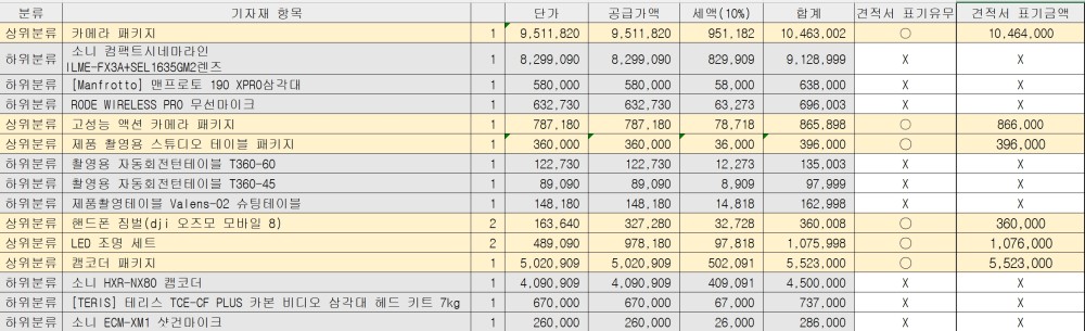 세부내역 및 대학생 사진영상장비 및 기타기자재 컨설팅 후 기자재 목로 구매 계획서 수립
